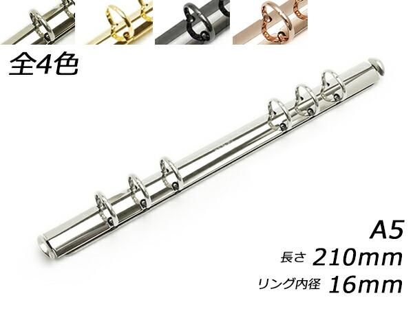クラウゼバインダー A5サイズ 6穴タイプ ニッケル/本金/黒ニッケル/ピンクゴールド 長さ210mm|リング内径16mm 1ヶ
